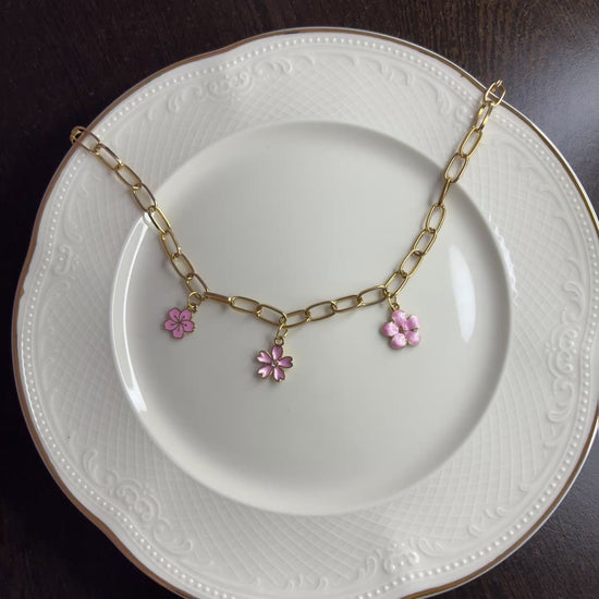 Floral Pink Charm Pendant with Anti-Tarnish Golden Chain for Women | Elegant Daily Wear Jewellery – RidhaPearls